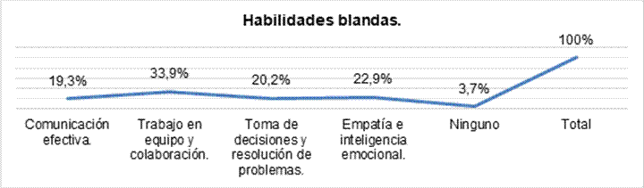 V zquez, et al. (2022) manifiestan que las habilidades blandas tienden a ser el conjunto de capacidades y destrezas que poseen estrecha relaci n entre la inteligencia emocional y comunicaci n efectiva, que les permite a los estudiantes el ejercicio del liderazgo en cada actividad por ejecutar. Por consiguiente, dentro de estas habilidades se hace nfasis el liderazgo, donde se encuentra el desenvolvimiento en el trabajo en equipo, en conjunto con su experiencia que fortalecen en el desarrollo de sus competencias.