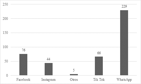 A partir del análisis de datos, los resultados presentados en el Gráfico 2 se extraen que la red social más utilizada por los potenciales clientes de la empresa es WhatsApp con un 55%, un 18% menciona que usan con más frecuencia la aplicación Facebook, 66 clientes que corresponde a un 16% destacan que utilizan TikTok, un 10% expresa que utilizan el aplicativo Instagram y un 1% de los clientes afirman que utilizan otras redes sociales. El hecho de que algunos clientes utilicen una red social más que otra para acceder a internet indica preferencias y patrones de uso específicos. Esta disparidad puede influir en la forma en que la empresa se conecta con su audiencia objetivo, es así que, partiendo de este análisis, la empresa debe adaptar sus estrategias de publicidad que posean contenido relevante para maximizar la participación y el impacto en dicha red social preferida por sus clientes.