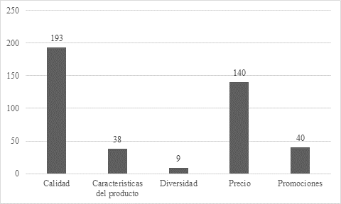 De los encuestados, el 46% afirman que, el principal aspecto que consideran al momento de realizar una compra es la calidad del producto, un 33% menciona que lo primordial para ellos es que el precio sea accesible, un 10% establece que solo realiza la compra si el producto está en promoción, un 9% se detiene a revisar de forma minuciosa las características de lo que va a adquirir, y por último, un 2% considera que se fija en la diversidad del producto. Partiendo de este análisis, la empresa puede tomar diversas acciones para abordar las preferencias de los clientes al realizar una compra. Resultaría importante que “Mueblería Caicedo” se enfoque en la calidad del producto, mejorando su diseño y fabricación para cumplir con las expectativas y generar confianza.