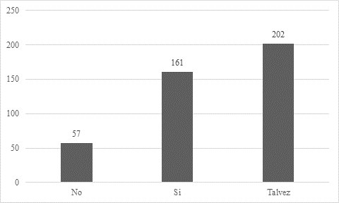 De acuerdo con el Gráfico 3 los resultados demuestran un 54% expresan que sí les gustaría recibir información a través de redes sociales acerca de los productos, promociones o publicidad que llegue a realizar “Mueblería Caicedo”, sin embargo, un 46% siendo un porcentaje bastante alto, afirma que no tienen interés en conocer estos aspectos. Se puede apreciar que la diferencia entre los clientes que desean obtener información a través de redes sociales y aquellos que no lo desean presentan un porcentaje similar. De esta forma, resulta crucial que la empresa ajuste sus programas de comunicación y proporcione alternativas para llegar de forma efectiva a ambos grupos, garantizando así la satisfacción de sus necesidades en términos de información y atención al cliente.