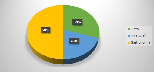 Por otra parte, también se encuestó acerca de las motivaciones que el turista tiene para volver a visitar Manta y se constatan las siguientes: la gastronomía fue destacada por el 50% de los encuestados, seguida de las playas con un 30% y la recreación con un 20%. Este alto porcentaje atribuido a la gastronomía resalta la importancia de la oferta culinaria de la ciudad como factor determinante para la satisfacción y el retorno de los turistas. La variedad y calidad de la comida local contribuyen significativamente a la experiencia general del visitante, convirtiéndose en un atractivo distintivo de Manta. Por otro lado, las playas, mencionadas por el 30% de los encuestados, y la recreación, por el 20%, subrayan la relevancia de los recursos naturales y las actividades recreativas como motivaciones adicionales para los turistas, evidenciando la diversidad de intereses que Manta puede satisfacer como destino turístico integral.