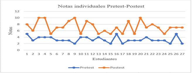 También confirmó que existe una diferencia significativa entre las calificaciones de la prueba inicial y la prueba final del grupo experimental, Figura 3.