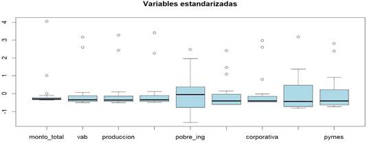 El primer gráfico (figura 1) generado corresponde a diagramas de caja, cuyo propósito es identificar la presencia de datos atípicos. La existencia de outliers sugiere la necesidad de aplicar técnicas para contrastar la varianza, lo cual se manifiesta en este caso de estudio. Como se observa, la presencia de puntos fuera de la caja y los bigotes evidencia la existencia de valores atípicos.